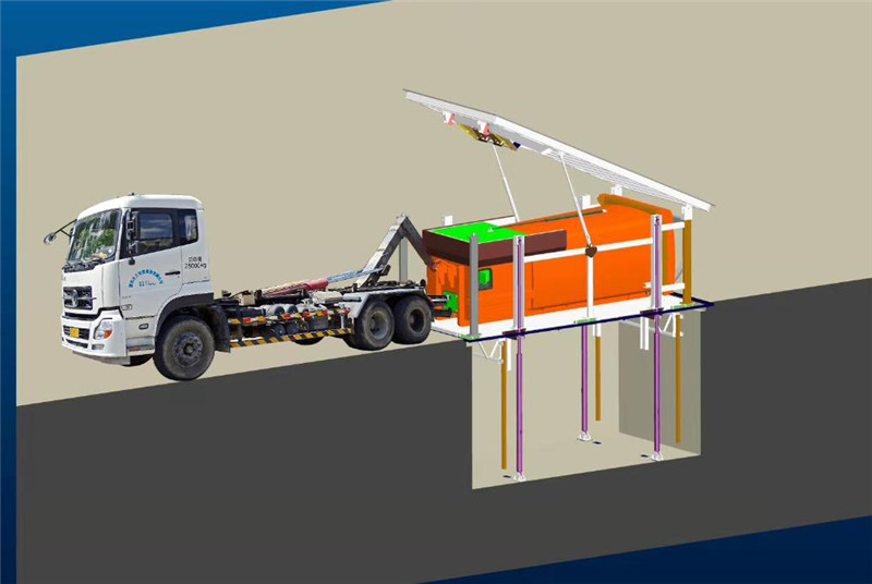 水平移動式景觀地埋式垃圾站,也稱作地埋式垃圾壓縮機(jī)。將整個設(shè)備隱藏于地下進(jìn)行垃圾處理的一種設(shè)備,我們把垃圾轉(zhuǎn)運站從地上搬到地下,并結(jié)合定制的氣味控制系統(tǒng)及滲濾液處理排放系統(tǒng),徹底解決了視覺和氣味的污染。